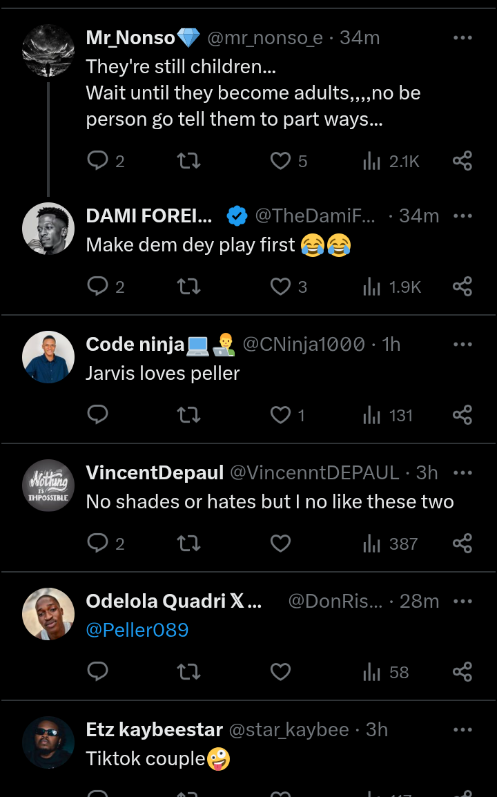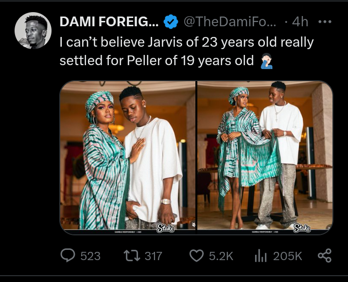 "I can't believe Jarvis of 23yrs really settles for Peller of 19yrs" - fans reacts to Peller's photo